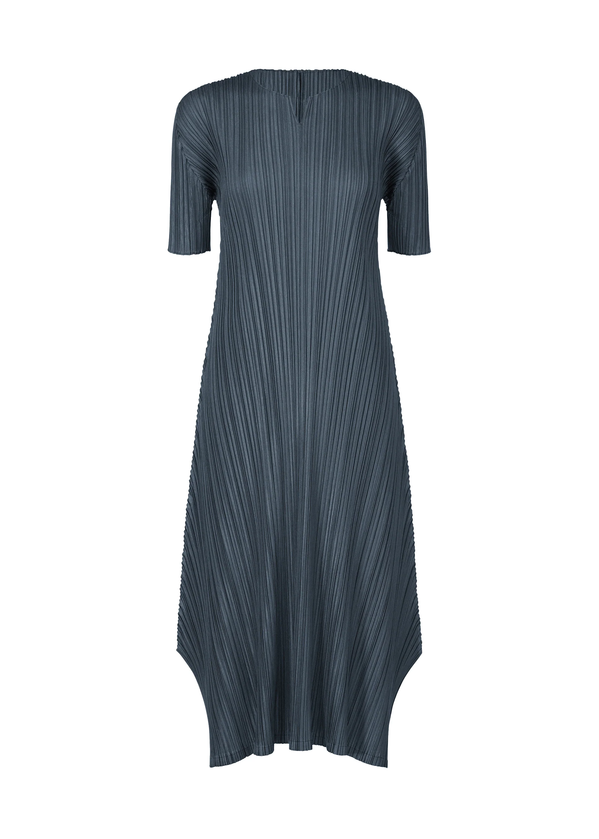 柔らかい風合いの生地を使用した半袖ワンピース。両脇にスリットがあります。