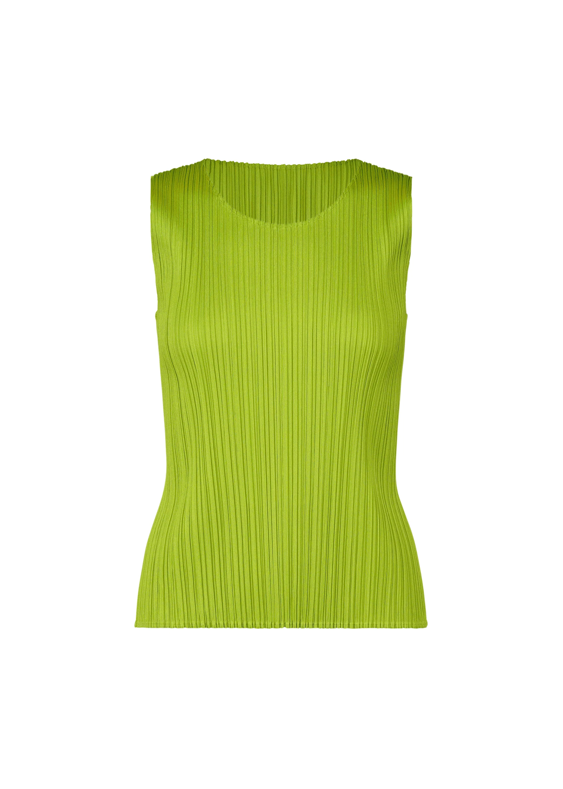 ステップを踏んで踊り出したくなるような軽やかな色展開の丸首ノースリーブトップ。シンプルなシルエットでカラフルな重ね着が楽しめます。